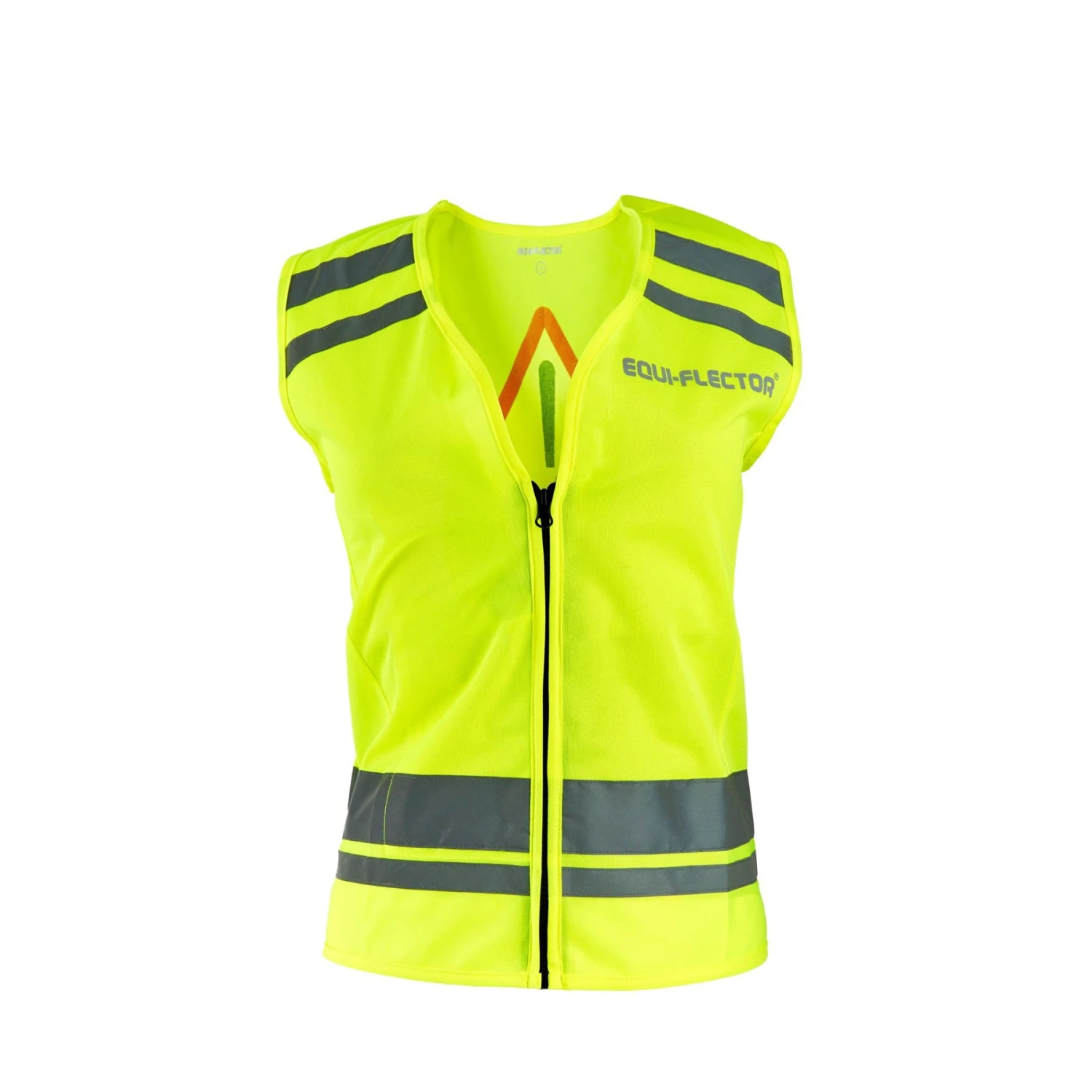 The easy to wear Equi-Flector safety vest increases the rider’s visibility to pedestrians, road users. The bright fabric, bold graphics and reflective strips assist with visibility in daylight and low light conditions. Proportioned for children with a zip fastening and a printed back. Part of the Equi-Flector range of bright, reflective garments for horse and rider.