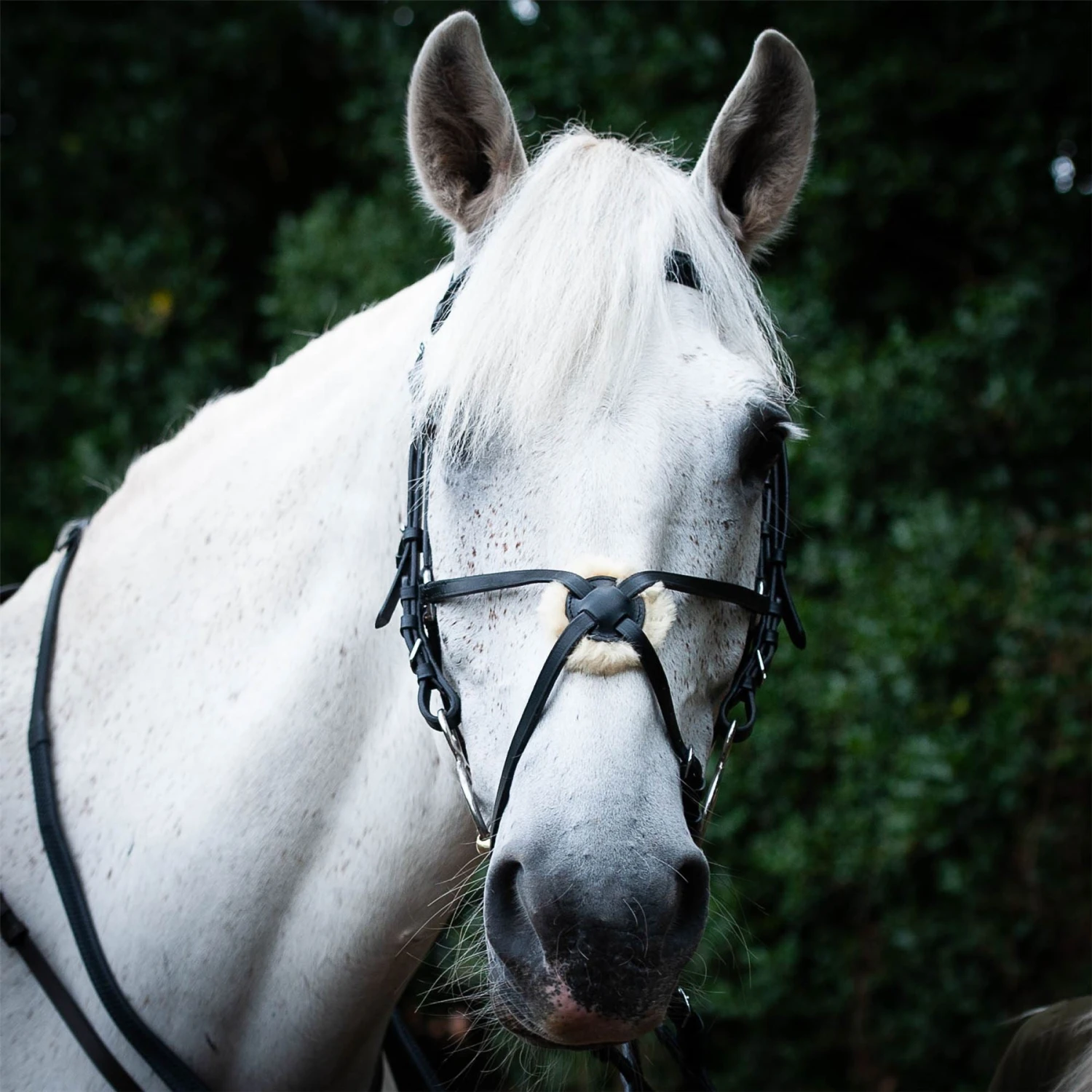 The Grackle Bridle is ideal for everyday riding and competitions. The bridle features a grackle ring noseband, with Sheep skin padding on the nose this bridle distributes pressure evenly and is a perfect buffer against any unwanted pressure. The rubber reins are included.