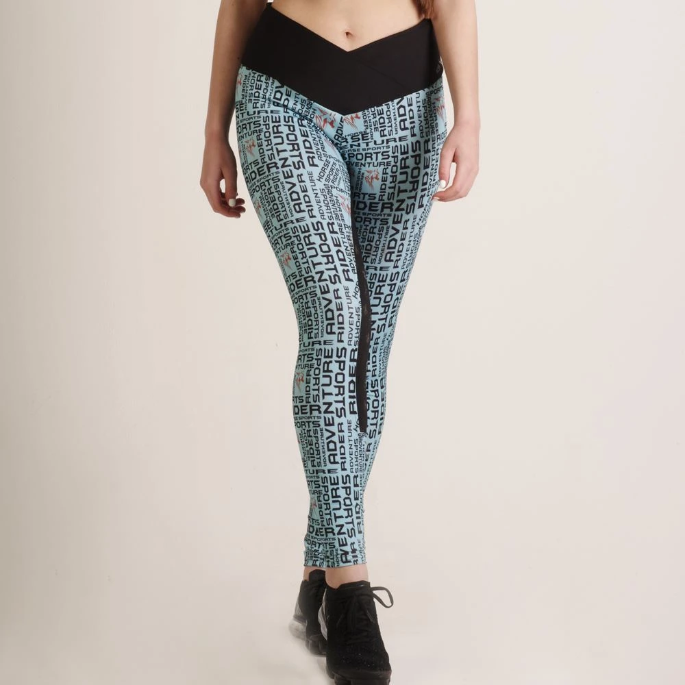 Be unique with these scripted full silicone seat contrast leggings. The high-waisted cross waistband, and stretchy design makes them the perfect active riding legging. With a built in pocket in the waistband they are a super practical as an everyday riding tight. The silicone pattern are mini snaffles and Fleur De Lis making these tights super adhesive and sure to stand out.