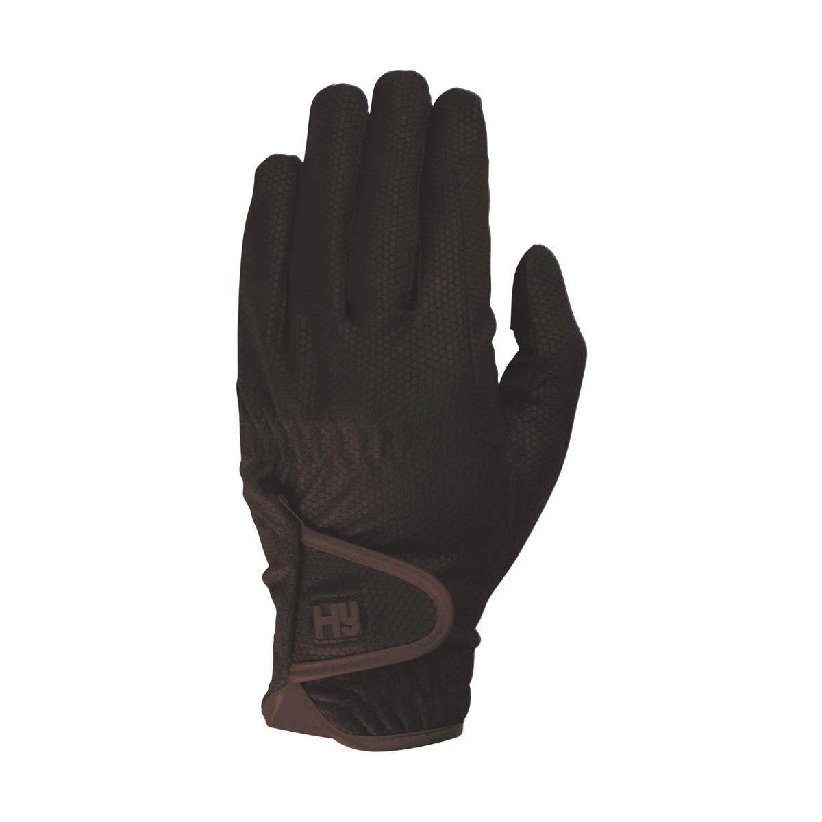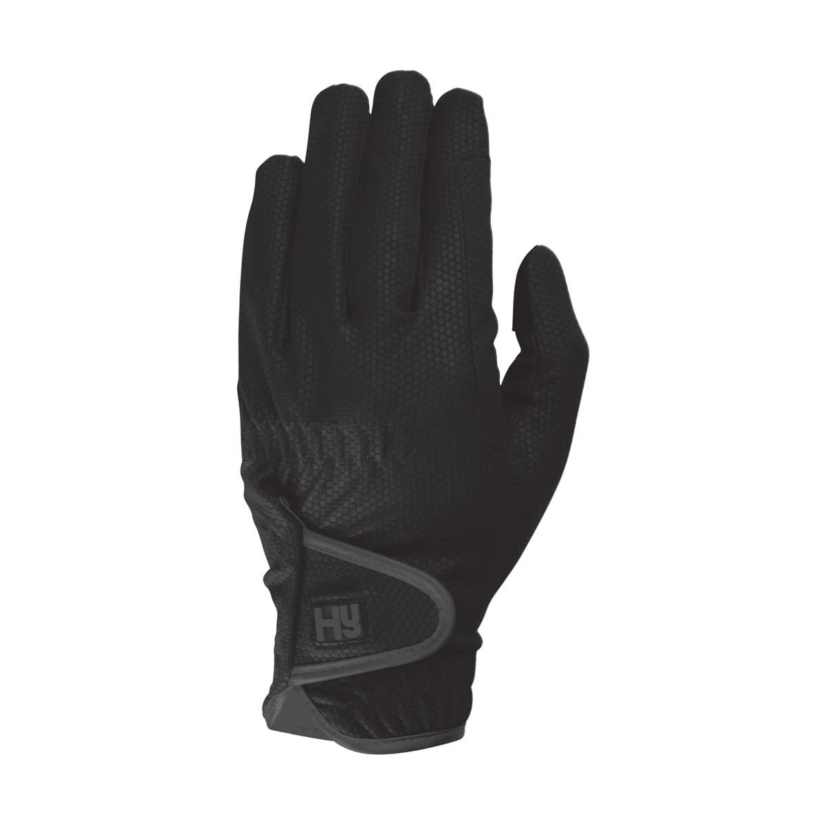 These gloves certainly have the wow factor in stylish tonal colours, with a coordinated Hy logo on the wrist cuff. The advance grip Synthetic PU material provides excellent feel on the reins and is reinforced in key areas. The touch tape wrist fastening is partnered with an elastic cuff for a secure fit and smart touch screen finger tips are integrated. A handy hanging loop is included on the inside. These gloves are ideal for competition.