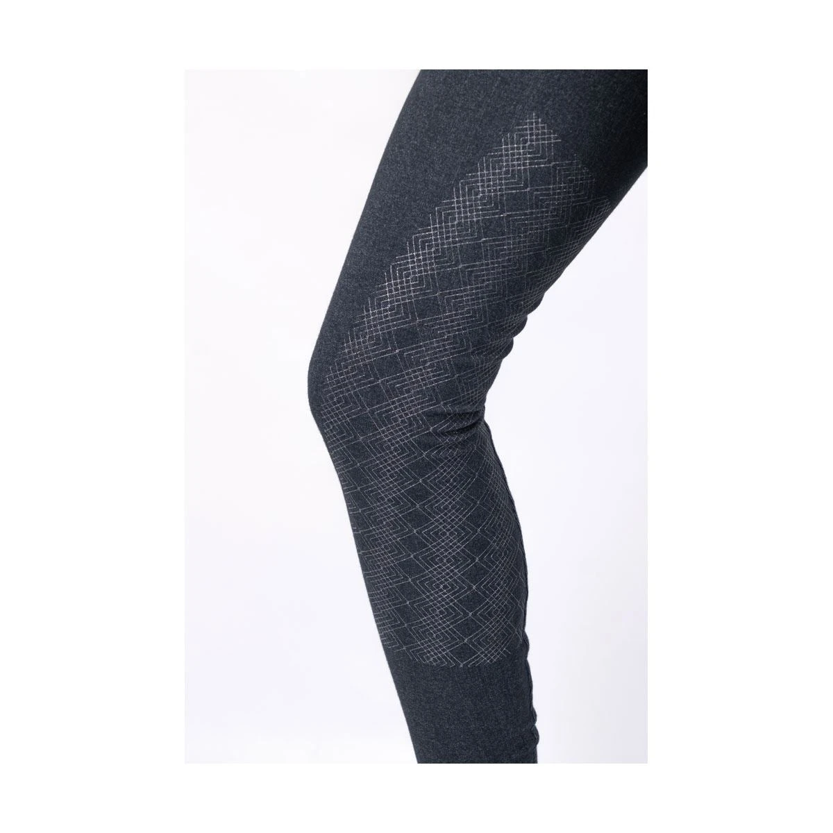 A fashionable choice for any equestrian athlete, the Jesmond Jewel Denim Look Tights offer guaranteed comfort thanks to their stretch material. These tights feature tonal diamond shaped embroidery to the handy phone pocket and two practical back pockets, all finished off with delicate silver diamantes for a subtle bit of sparkle. The tonal matte 3/4 silicone print seat is shaped to match the diamond shape stitching for added style and additional grip in the saddle.