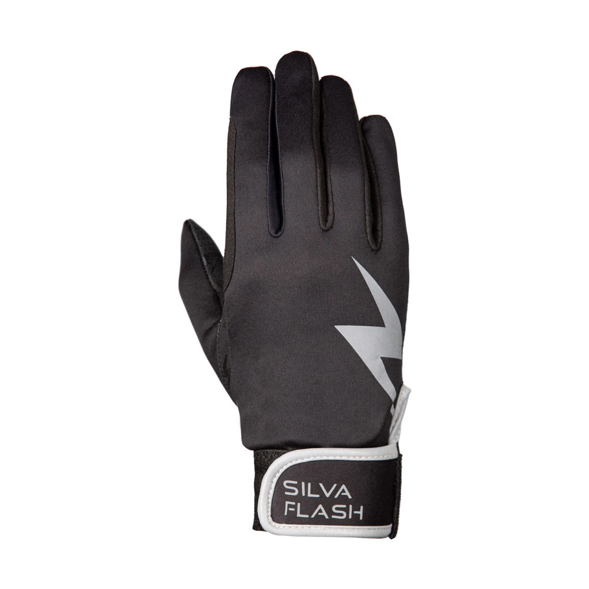 Have 360 degree visibility with the Silva Flash Riding Gloves. These gloves are showerproof and wind resistant, made with a technical, moisture wicking fabric that optimises breathability whilst keeping your hands insulated. The black design is complemented with reflective lightening detailing that gives off a scintillating white glow when subjected to lights. Featuring a secure touch tape fastening for optimum fit, completed with reflective silver piping and logo to the cuff and strap. The touchscreen finger tips allow for you to use your phone to save having to remove your gloves. Finished with a tonal black lightening silicone grip palm for secure grip on the reins Ideal for riding or leading on dark evenings and mornings, or when visibility is reduced.