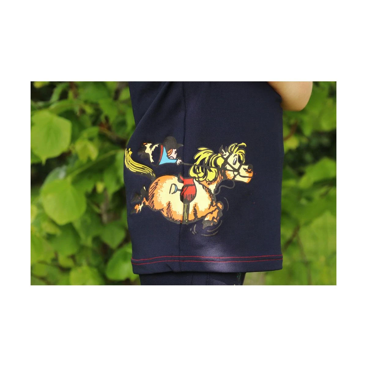This breathable cotton t-shirt is a must have addition to your child�s wardrobe. In classic navy with red detailing, this matches the Thelwell collection perfectly and is ideal for everyday wear, whether it be at the yard or out and about! With fun galloping Thelwell character, Thelwell logo to the chest and discrete Hy Equestrian logo to the sleeve.