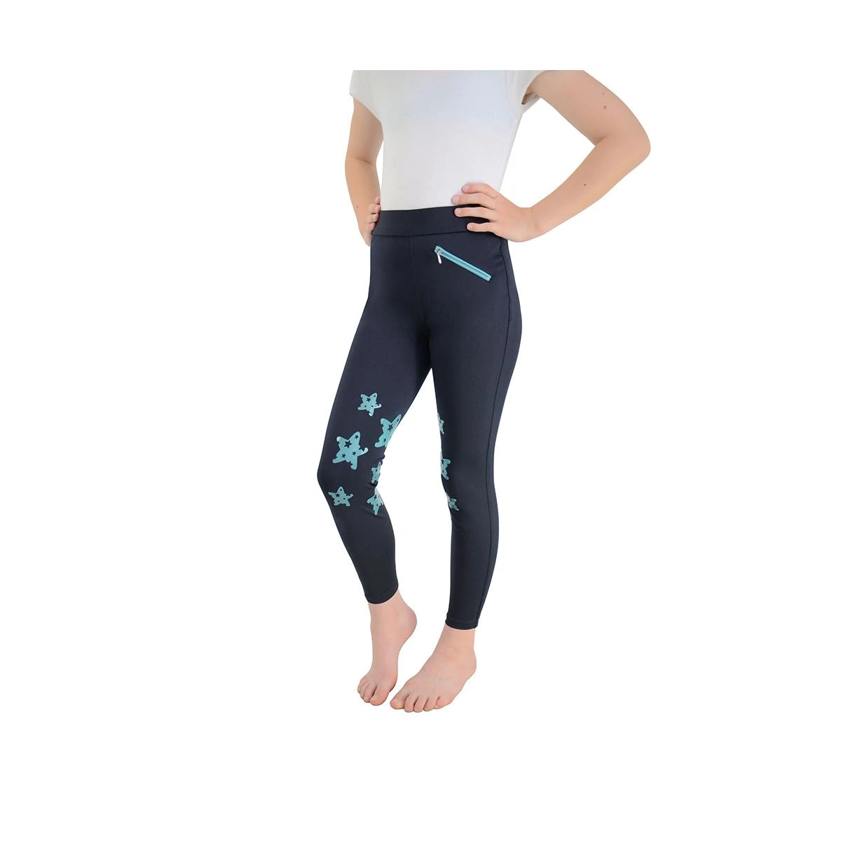 A stylish and comfortable choice for your little rider. Made from polyester and spandex, they have an elasticated waist for ultimate comfort, and the coloured silicone stars around the knees increase grip to help them stay in the saddle. The matching coloured zip pocket on the front finishes the look.