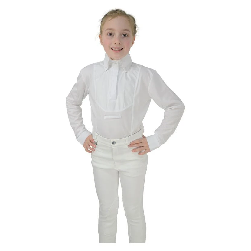 This long sleeved tie shirt is designed with CoolDry fabric to wick away moisture, ensuring you remain comfortable, confident and dry in the show ring. The bi-stretch material provides freedom of movement whilst riding. A traditional cotton front panel creates a smart appearance at all times, enhanced by the addition of the button collar and tie keeper.