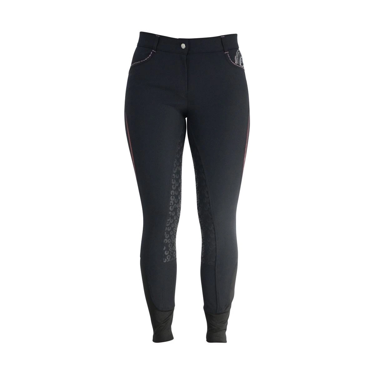 This is A must-have for the fashion-conscious rider. Designed with a full silicon seat to give extra grip and security in the saddle, these breeches are thoughtfully decorated with a foiled rose gold detailing to make them really stand out. Further features include no bulk stretch hem ankles for a comfortable fit under long boots. The 4-way stretch material provides freedom of movement in the saddle, whilst remaining incredibly comfortable. These stylish breeches are completed with belt loops, a Hy embossed button and rose gold stitching on the front pockets.