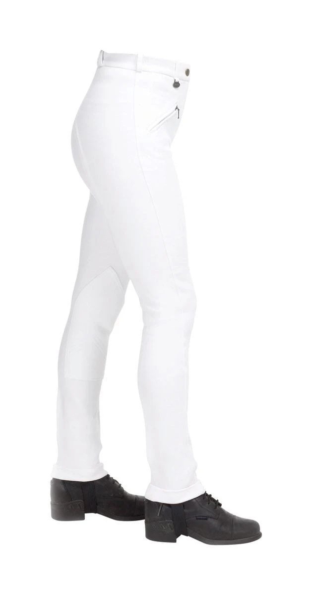 This classic cut ladies jodhpur is comfortable, practical and traditional in style. Premium weight, 94% Cotton and 6% Spandex for great 4 way stretch and comfort. Featuring discreet front zip pocket, full zip fly, belt loops, reinforced stitching and elastic boot strap at the ankles (removable) with rolled up bottoms. Machine washable at 40°C. Leg length: Regular.
