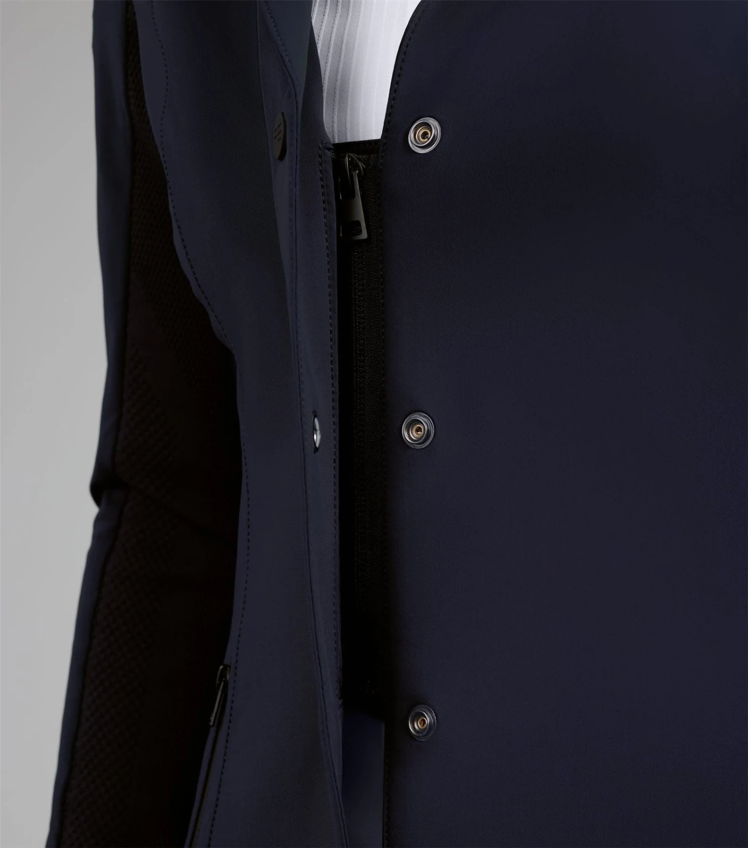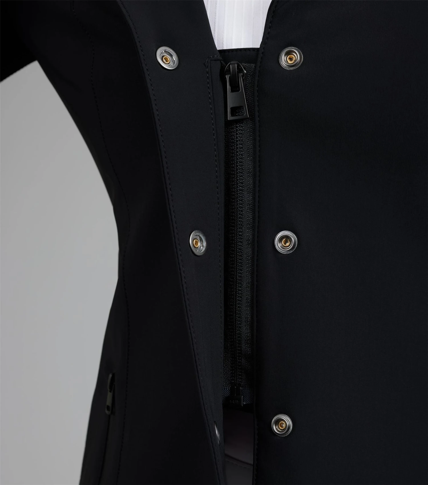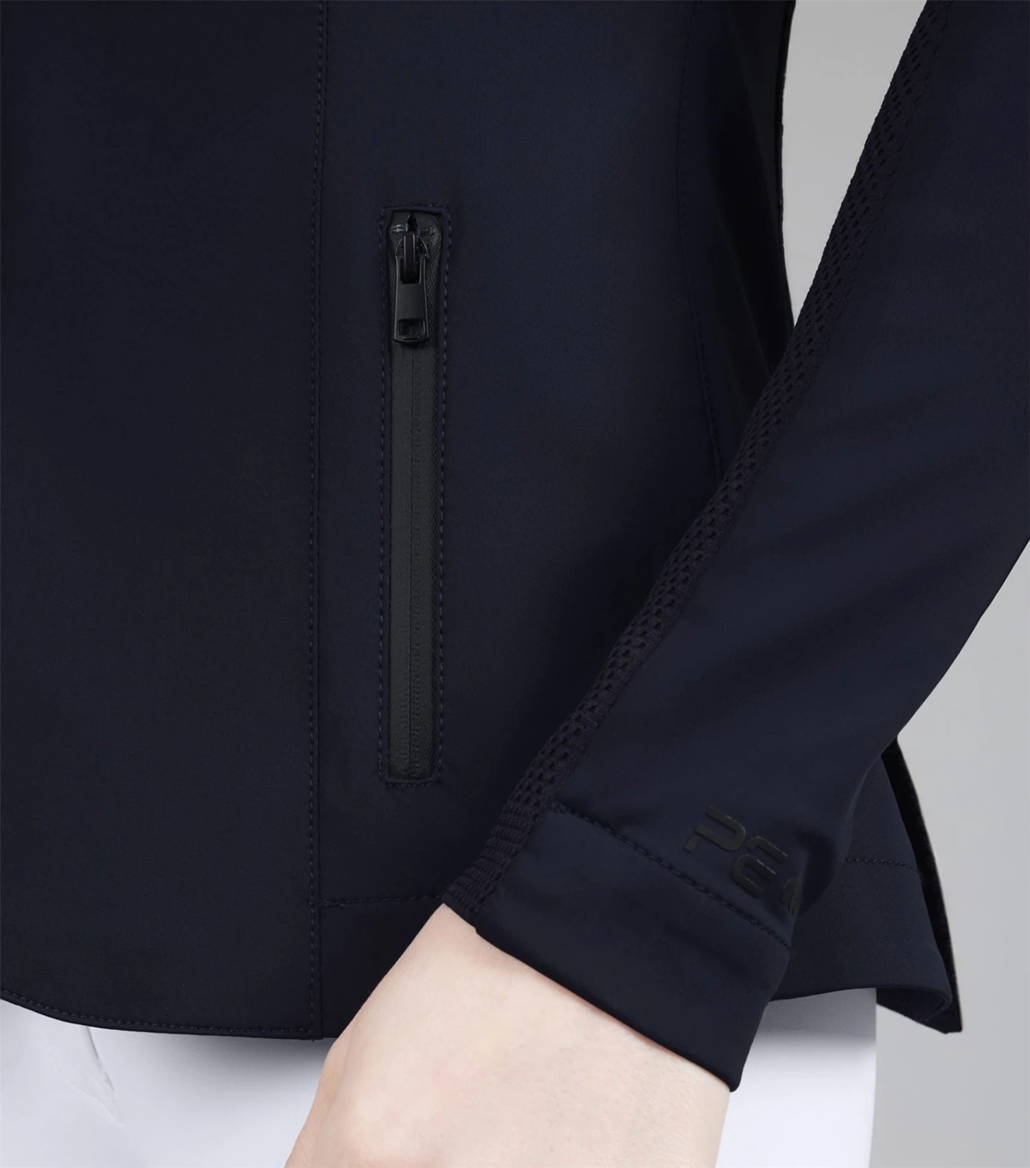 Discover new heights of performance equestrian wear, with intense attention to detail and innovative fabric technology. Focusing on high-quality fabrics and technical materials, the BLACK LABEL represents the pinnacle of refined aesthetics, elite performance, and timeless craftsmanship. This ladies competition jacket is ideal for a wide variety of equestrian disciplines. The construction of this innovative design combines panels of differing technical fabrics. The face of this jacket is crafted from a lightweight sleek material that feels luxuriously soft to the touch and comfortable against your skin. Evolved for the modern rider, the back and arms incorporate a technical 3D knit which is moulded to the muscular anatomy of the back and shoulders of the rider. This innovative construction allows for enhanced freedom of movement whilst creating unparalleled breathability, perfect for the intensity of competition. Classically cut, this competition jacket is formed to provide a flattering silhouette, with meticulously placed style lines. A traditional notched lapel collar sits at the top of a YKK zip, concealed by a clean, press stud closure. Two pockets offer a place for storing your valuables, with added security provided by zip closures of a matte finish. The subtle matte styling continues across the finer details of this jacket, including the branded press stud closures, and PE branding at the periphery of the cuff. Our signature chrome PE badge is situated on the rider�s left arm, presenting continuity with our existing collection. An embossed PE form is elegantly rested on the rider�s right arm, boasting the quality and functionality of this luxury performance jacket. An elegant statement piece, this competition jacket is sure to provide a traditional, timeless appearance. The deep shade of Jet Black allows you to leave a professional impression in the arena, rejuvenating your competition wardrobe. Innovation is in our company DNA. We have taken decades of expertise into new and exciting innovations within performance textiles. Surpassing the limits of current industry standards, every detail is considered, bringing new heights to your equestrian wear. The Quarto Ladies Competition Jacket is a key representative of these values, allowing luxury, high-end designs to be accessible and affordable.
