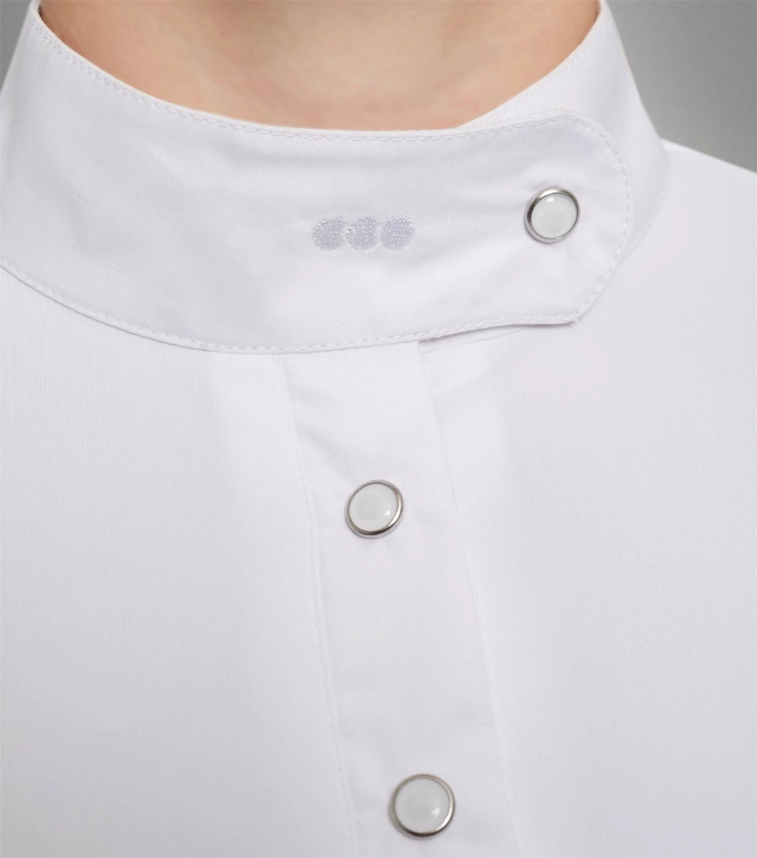 This girls competition shirt is perfect for a wide variety of equestrian disciplines. Crafted from highly breathable and easy-care material, this show shirt is luxuriously soft to the touch and therefore often ideal for those with sensitive skin. The elegant silhouette of the Rossini Lycra Show Shirt is ensured by the comfort fit and 4-way stretch properties provided by this technical fabric blend. Crease resistant and moisture wicking – this shirt will both meet and exceed your requirements for functional performance. Finished with a stylish stand collar and pleated cuffs: both accented with subtle tonal PE branding, the Rossini Lycra Show Shirt is everything you need to complete your competition look.