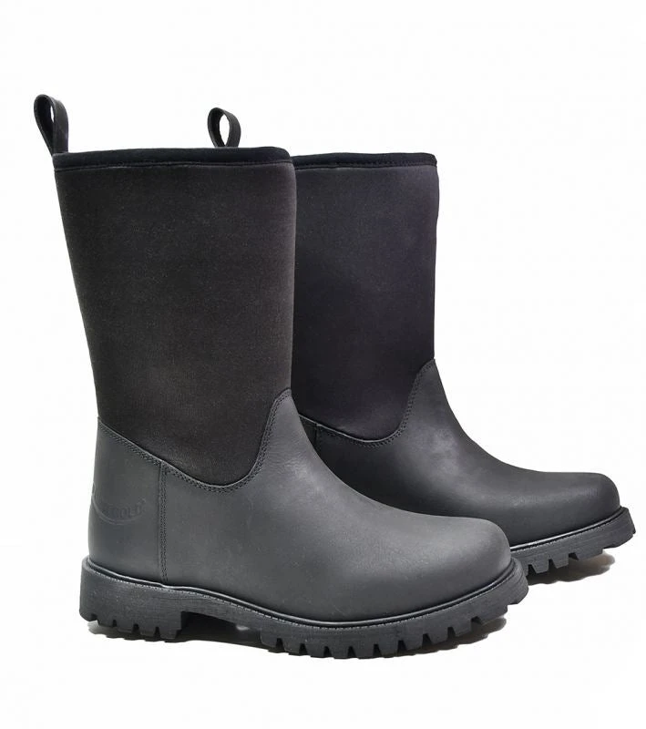 This innovative country boot effortlessley combines the durability of a leather foot with the comfort and flexibility of a neoprene upper. A truly reliable, sturdy boot for all outdoor occasions whether this be jobs around the yard, a day out in the countryside or daily dog walks. Waxy finish leather foot Warm and flexible neoprene upper Shorter style mid-calf length boot Hassle free pull on-off Foam padded inner soles for an all day comfort fit feeling Energy return sole unit for durability Embossed Rhinegold brandng at the heal