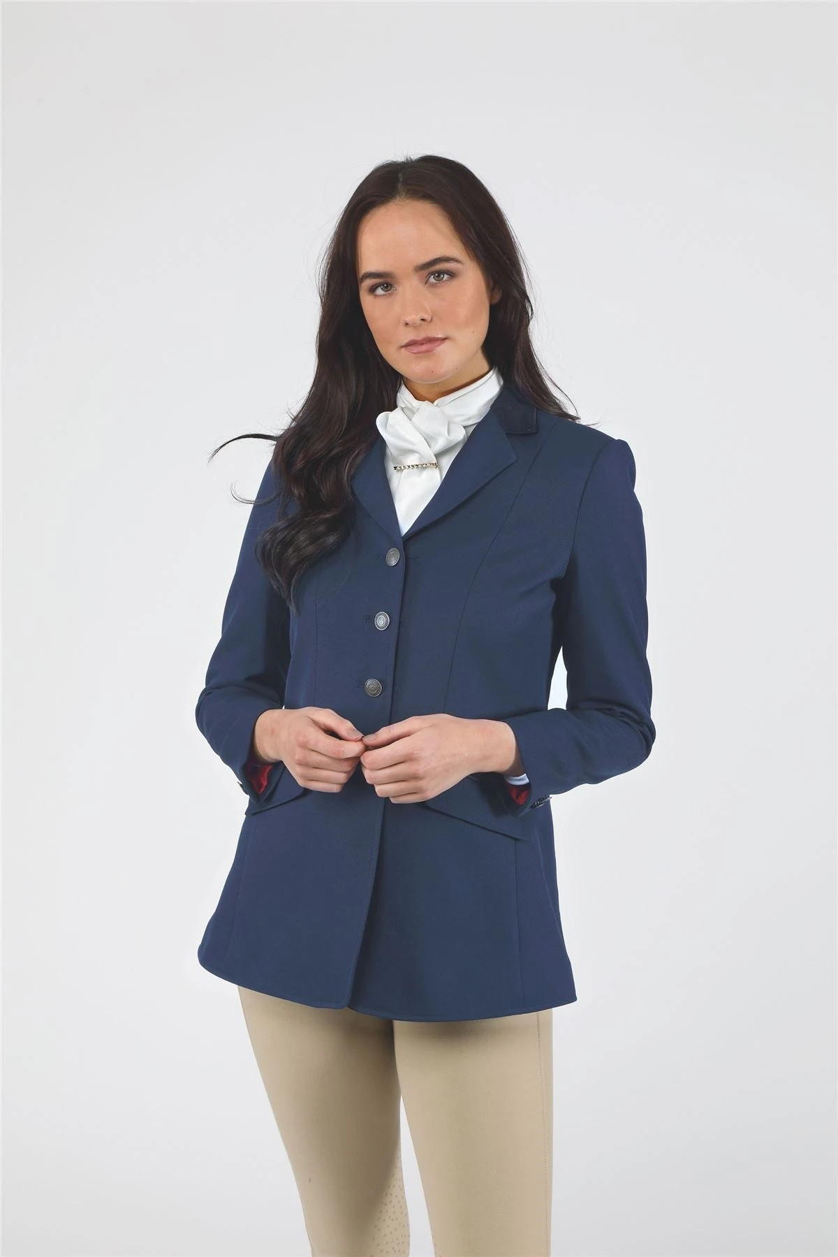 The Shires Aston Jacket for ladies boasts of a classic silhouette, smartly tailored to elevate your equestrian appearance. It comes adorned with a velvet-trimmed collar that adds a touch of elegance to your overall look. Pair it with any Just Horse Riders riding gear for a sophisticated ensemble. Beyond its alluring allure, the jacket features double rear vents, providing a comfortable fit and excellent mobility during horse riding activities. Exclusive brass colour button fastenings and sleeve detail exude finesse and poise. Above all, it’s 100% polyester excluding trims, signaling lasting durability. Not to mention, this equestrian jacket is hand washable, making it impressively easy to maintain and care for. Don’t miss the opportunity to ride in style – order now from Just Horse Riders!
